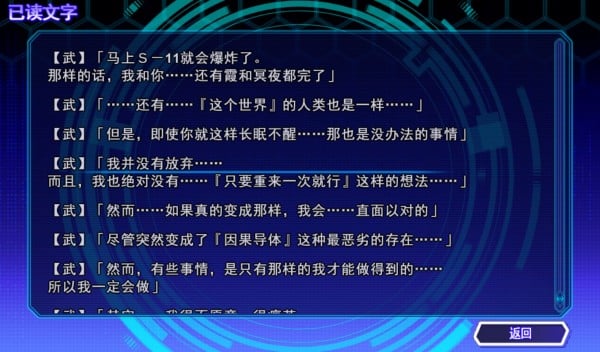 尽管有着大量平行世界、世界线跳跃、“死掉的话就会回到10月22日复活点”之类的设定,但就文中的这三篇来说,这并不是一个轮回系的游戏。因为不同于《夏日重现》或者《RE:0》《C+C》的主角那样甚至可以选择自杀回到复活点,本部作品中的主角从来没有那种“死了就死了过一会儿还复活”的儿戏心态。毕竟复活这技能会上瘾,当发现自己能重来第一遍,就会继续重来无数遍。