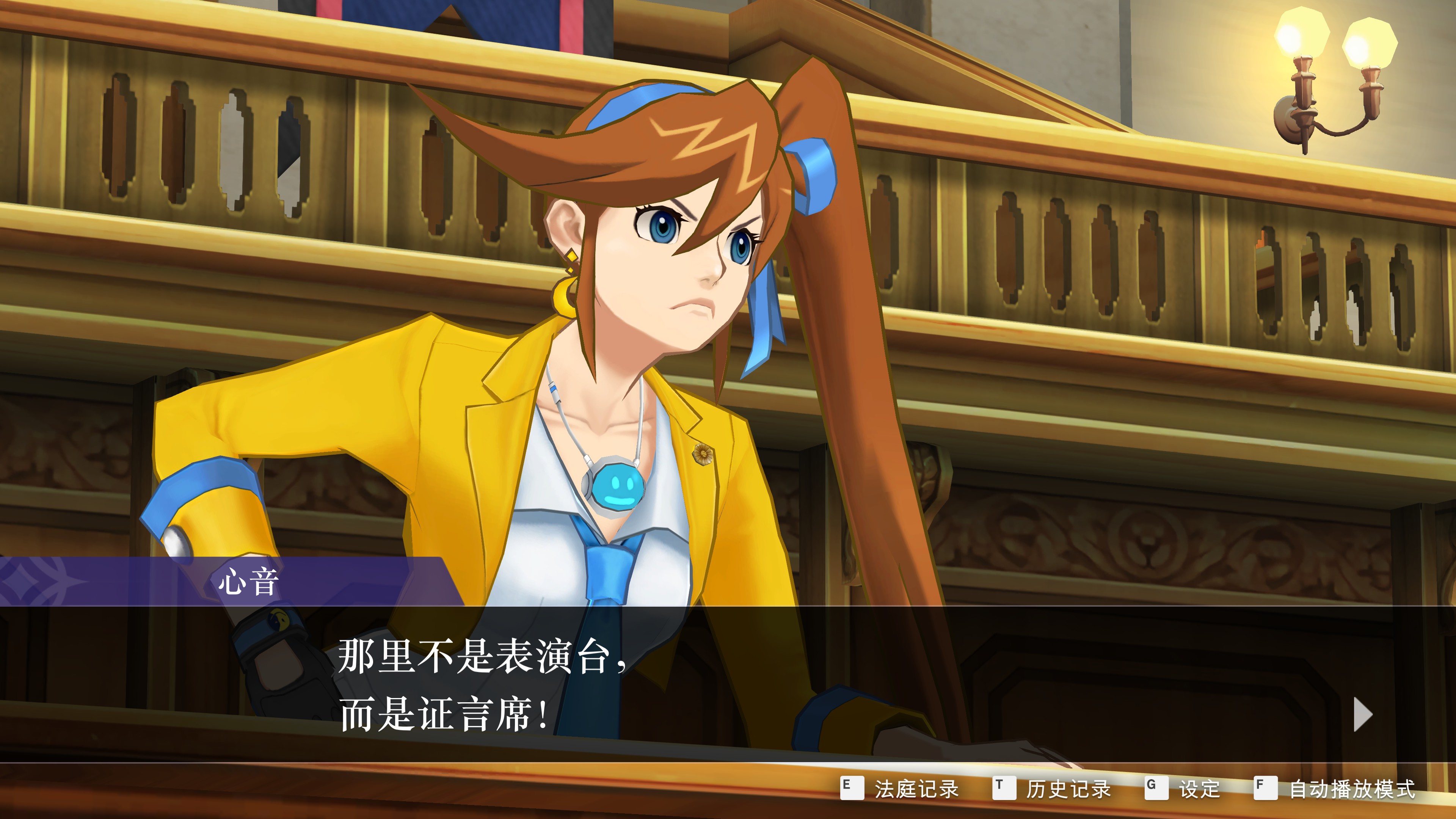 法官席就是头等观众席,下面一群小丑在那表演,导演觉得来点爆的好,游戏一上来就把法庭炸了,之后法庭又是枪击又是机器人叛乱,还有N-WORD上来给你表演几段RAP助助兴,之后还有日本传统民俗装神弄鬼环节,还有观众大合唱,之后还有场外连线环节,各种表演节目比他妈春晚还好看。