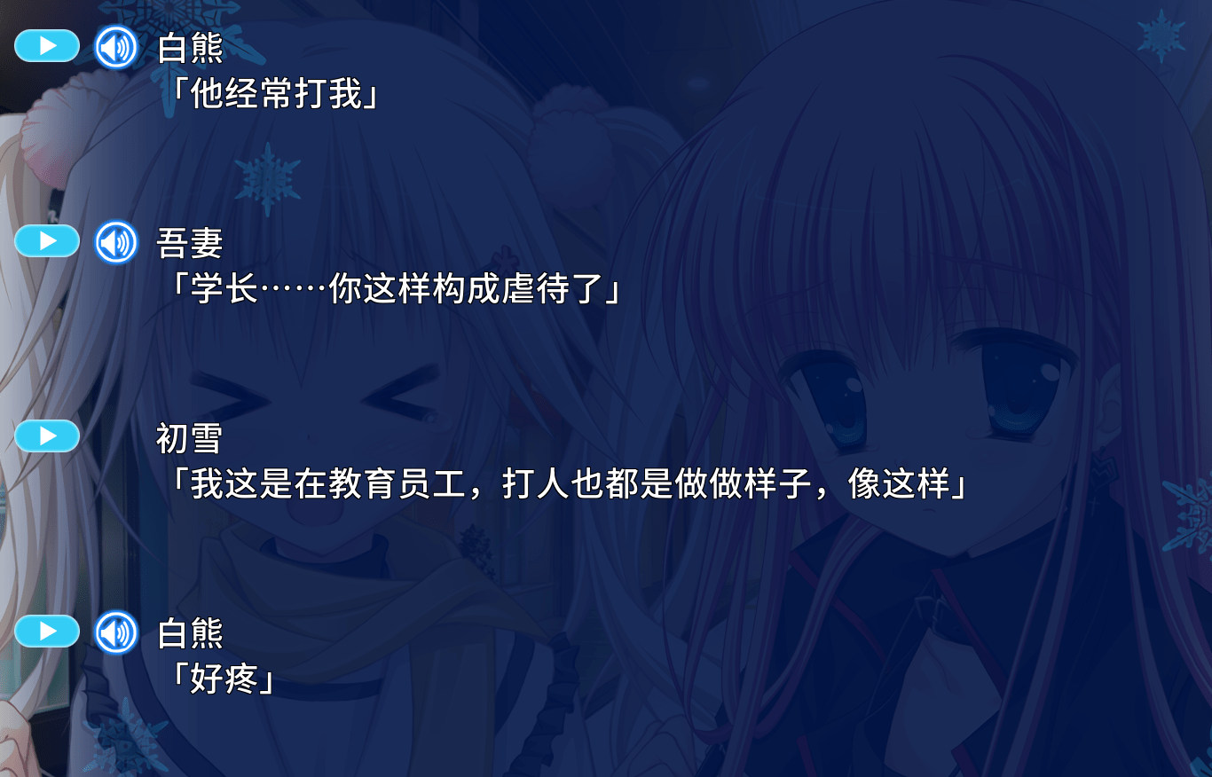 这个时候玩家还不知道你俩是什么前世恋人之类的,结果就看见男主对身边刚认识的美少女,天天出言不逊,诸如“揉死你”,“强奸你”,“上了你”,“小婊子”的污言秽语层出不穷。共通线还没过完,就已经把刚认识的所有女主都性骚扰一遍了。