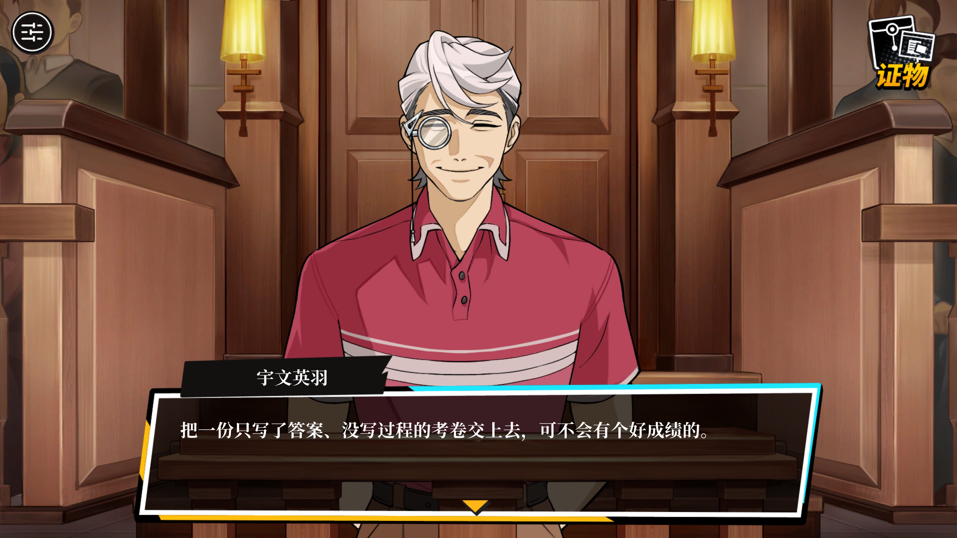 所有人都知道《逆转裁判》是个怎样的游戏——是个用证物在法庭上辩论的游戏,听上去很简单,但若仅仅是想写出一个合格的案子来模仿《逆》,就足够难倒一众人了,更遑论想要与《逆》齐肩、想写出若干连点成线的案子了。我当然佩服《无罪之庭》的剧本,他用无数神不知鬼不觉的铺垫,让我彻底心服口服,那一刻,我又一次醍醐灌顶般的头皮发麻——虽然说前几次头皮发麻是听到一些中文配音的时候。若是批评它重拿轻放是真的,挞伐它又在拿老生常谈的东西讨论也是真的,骂它演出还不如二十年前更是真真真,但我认了。
