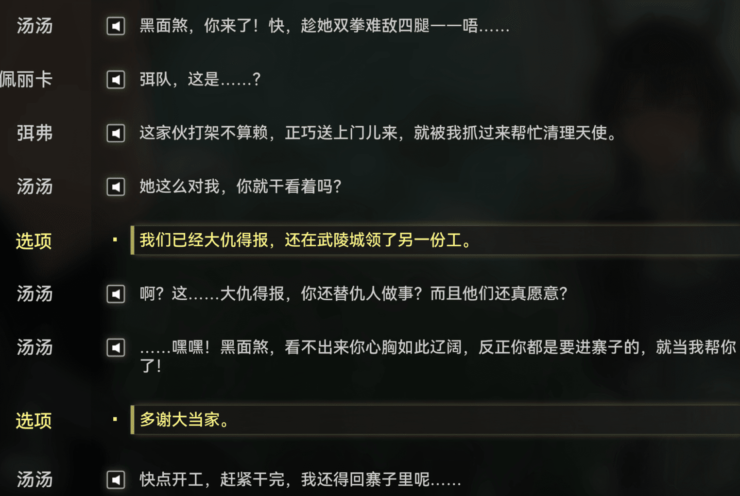 我:天哪,现在主角在官军下面干活,居然遇到汤汤了,这剧情要怎么发展,这是3岁玩家能理解的剧情吗?我想想都要被这复杂的剧情所折服了。